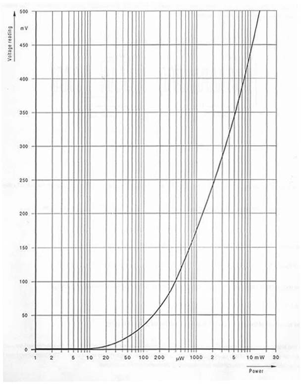 Measurement of outgoing power, Pva. To measure the outgoing power, Pva, connect to detector to gate 3 of the circulator and terminate gate 1 with the terminating impedance. Turn the potentiometer for the modulator voltage to the right hand stop (full power) and read the voltage on the detector. With the use of Figure 1.10, find the related power value. Vva = mV, Pva = mW 2.
